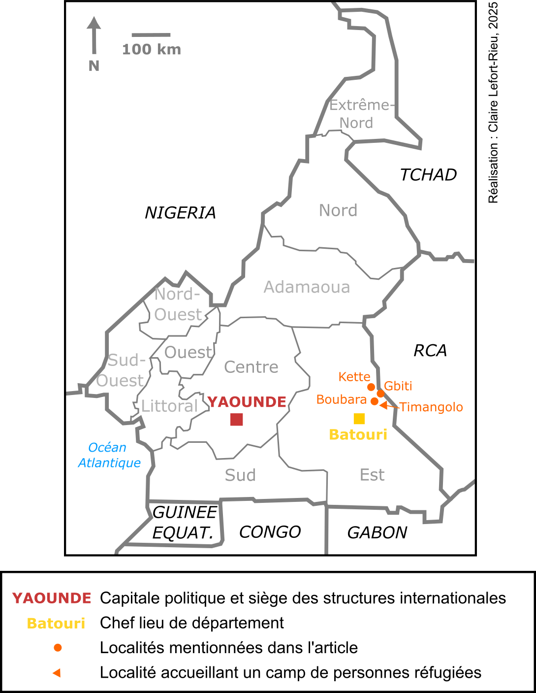 Ce texte souhaite donner à voir et à entendre les vécus de la pandémie au prisme des pratiques quotidiennes à l’œuvre dans les zones rurales de l’Est-Cameroun. Arrivée en février 2020 pour un deuxième terrain de recherche mené dans le cadre d’une thèse de doctorat, je me suis retrouvée – sans l’avoir anticipé – à documenter, au fil des mois, la façon dont la pandémie a été reçue, contournée, interprétée par les populations locales camerounaises, les individus réfugiés de République centrafricaine (RCA) voisine et le personnel des ONG et agences onusiennes chargé de mener des opérations d’assistance internationale dans l’arrondissement de Kette (département de la Kadey). Il s’est agi d’observer leur quotidien et d’écouter ce que ces personnes avaient à en dire5.