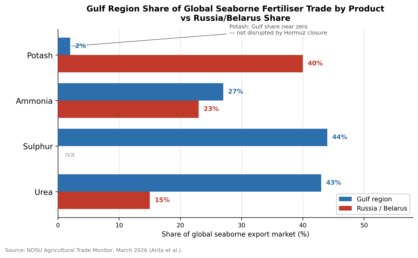 [5] NDSU Agricultural Trade Monitor, March 2026; Morocco World News, “Strait of Hormuz Closure Threatens Morocco’s Fertilizer Production, Exports,” 17 March 2026.